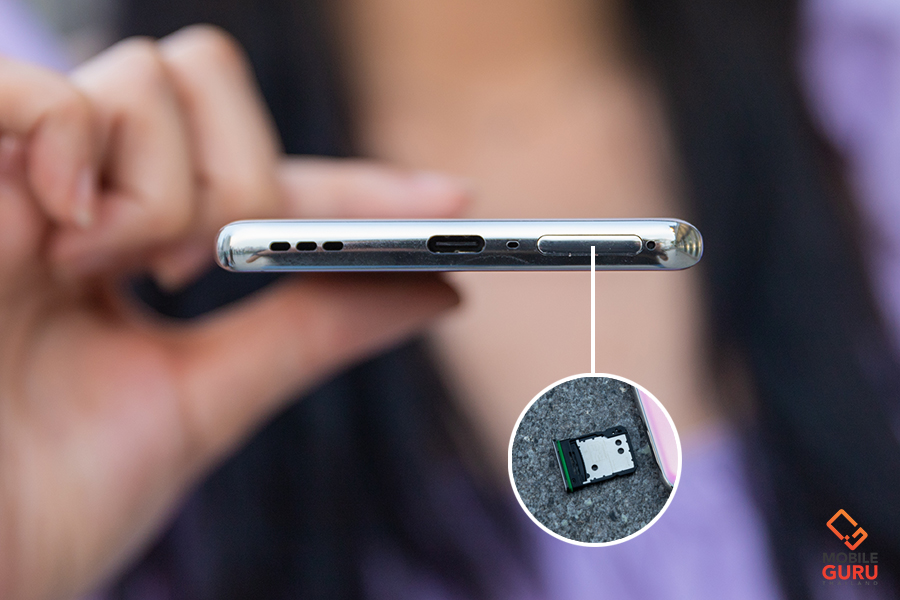 - ช่องใส่ซิมการ์ด Hybrid Slot รองรับซิมการ์ดแบบ Nano-SIM 2 ช่อง หรือ 1 Nano-SIM + 1 MicroSD Card (สูงสุด 1TB)
