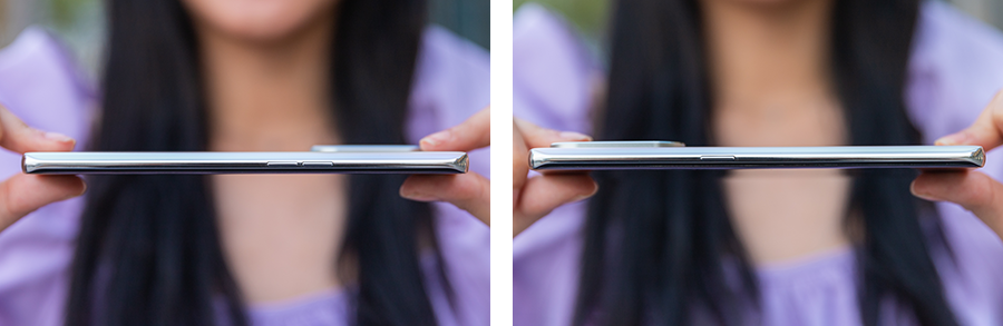 ดีไซน์แฟลกชิป Dual Micro-Curved ตัวเครื่องโค้งทั้งหน้าและหลัง พร้อมด้วยขนาดความบางของตัวเครื่องเพียง 7.7 มิลลิเมตร และน้ำหนักเบาเพียง 171 กรัมเท่านั้น และด้วยความบางนี้ จึงทำให้ผู้ใช้งานสมาร์ตโฟนสามารถจับถือใช้งานได้สบายมือมากยิ่งขึ้น