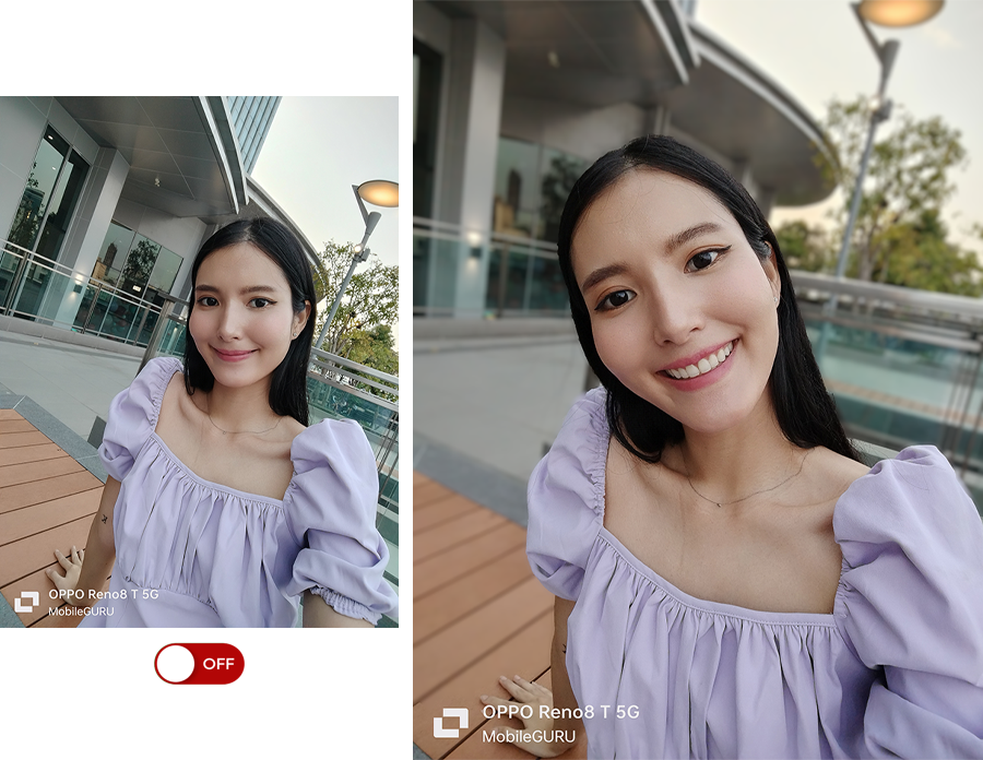 ปรับแต่งใบหน้าให้เนียนสวยด้วย AI Portrait Retouching เอไออัจฉริยะที่ใช้คุณสมบัติใบหน้าที่แตกต่างกัน 373 จุดผ่านอัลกอริธึมการจดจำใบหน้าของ OPPO สามารถระบุลักษณะใบหน้าได้อย่างแม่นยำ เกลี่ยผิวเนียน เบลอรอยสิว รอยแผลเป็น และจุดด่างดำต่าง ๆ ได้อย่างเป็นธรรมชาติ ซึ่งเราสามารถเลือกปรับระดับได้ 0 - 100 ภาพออกมาสวยเนี้ยบ ไม่ต้องเอาไปเข้าแอปฯ แต่งต่อเลย วิธีเข้าใช้งาน Camera > Portrait > Retouch