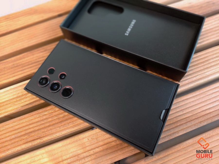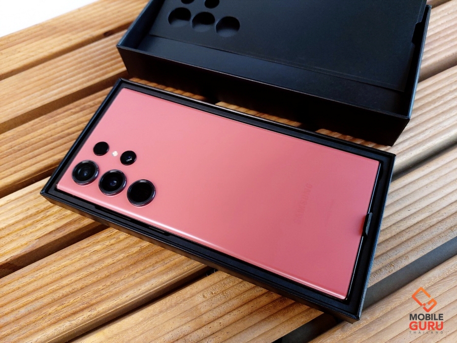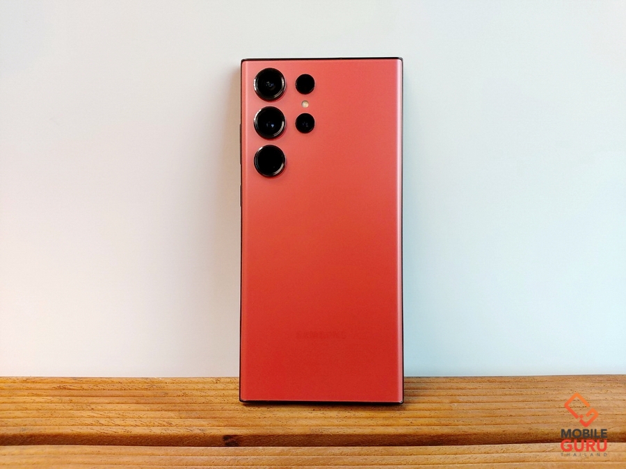 Samsung Galaxy S23 Ultra มาพร้อมตัวเครื่องวัสดุโลหะและกระจก กรอบตัวเครื่องเป็นวัสดุโลหะอลูมิเนียม สำหรับสีแดงจะมีการเคลือบผิวด้านสีดำ และฝาหลังรวมทั้งหน้าจอใช้กระจก Gorilla Glass Victus 2 สีแดงสวยงามมากๆครับ ตัดขอบด้านสีดำอย่างเท่เลย