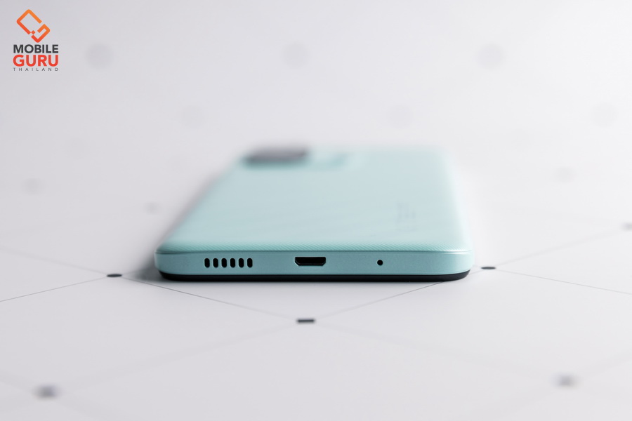 ตัวเครื่องด้านล่างตรงกลางเป็นรูชาร์จ Micro-USB ซึ่งสายชาร์จ และหัวปลั๊กได้แถมมากับตัวเครื่องแล้ว ร่องฝั่งซ้าย (ของภาพ) เป็นลำโพงเสียง ส่วนฝั่งขวานั้นเป็นไมโครโฟนสนทนา