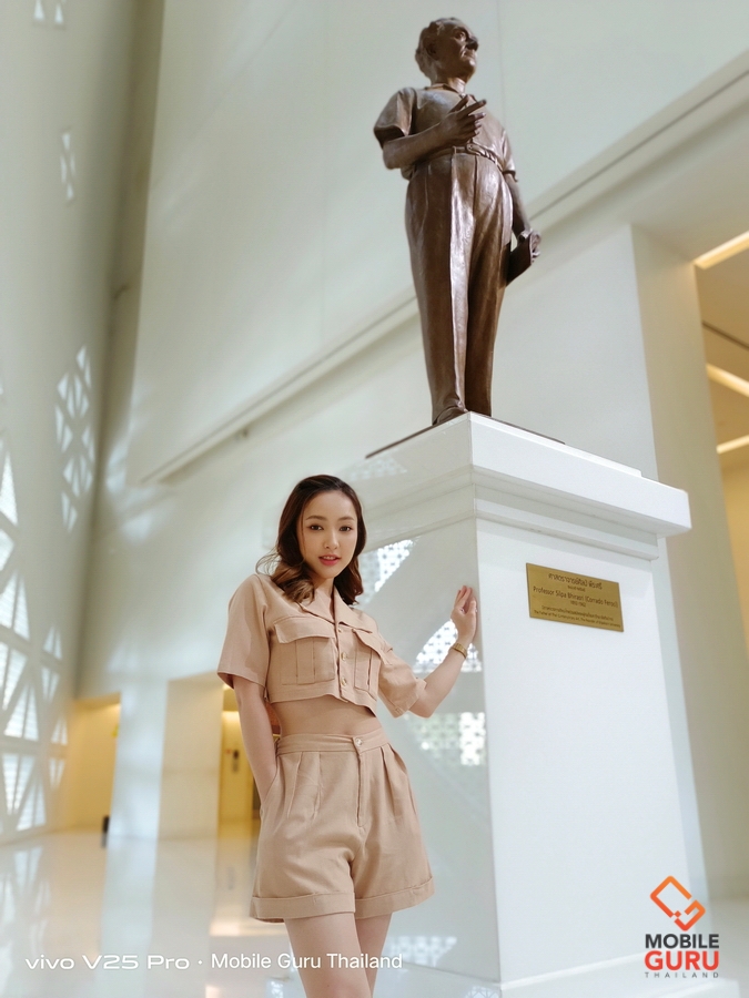 vivo V25 5G กับ vivo V25 Pro 5G จะมาพร้อมชุดกล้องความละเอียดเท่ากันเลยครับ กล้องหลัง 3 เลนส์ ความละเอียด 64MP (wide), PDAF, รองรับระบบกันสั่น OIS + 8MP (ultrawide) + 2MP (macro) แต่จะมีความแตกต่างกันในส่วนของเซนเซอร์ ซึ่งทาง vivo V25 Pro 5G จะเหนือกว่า แต่ว่าทาง vivo V25 5G ก็มาพร้อมกล้องหน้าความละเอียดสูงกว่านะครับ 50MP (ส่วนตัวโปร 32MP) โดยส่วนตัวผมมองว่า ทั้ง 2 รุ่นนี้ ล้วนถ่ายภาพออกมาสวยงามมากๆ ครับ โดยเฉพาะในส่วนฟีเจอร์ Portrait ทำผลงานออกมาได้น่าทึ่งทั้งคู่เลย ไม่ว่าคุณจะพกรุ่นไหน ก็ได้ผลงานดีๆ กลับบ้านแน่นอนครับ โดยในวันนี้เราจะไปถ่ายภาพกันกับน้องนางแบบสุดน่ารัก "น้องนิล" มาดูกันครับว่าสภาพแสงยากๆ อย่างในพิพิธภัณฑ์ สมาร์ตโฟน 2 รุ่นนี้ จะถ่ายออกมาสวยขนาดไหน