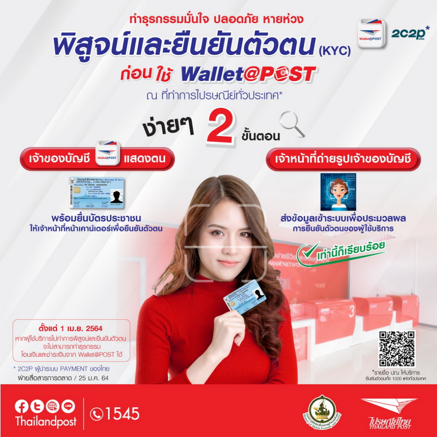 1. ยืนยันตัวตนที่ไปรษณีย์สาขาใกล้บ้าน