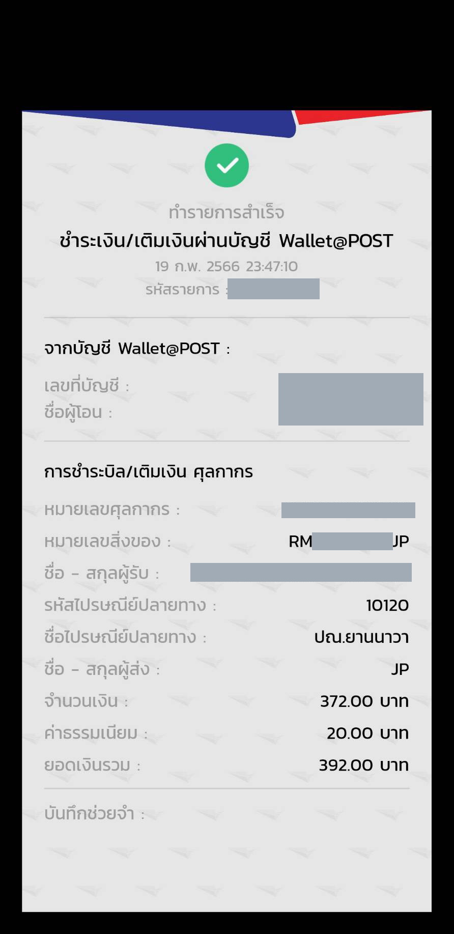 ใส่เลข Track เพื่อเช็คยอดภาษี แล้วกลับไปเติมเงิน
