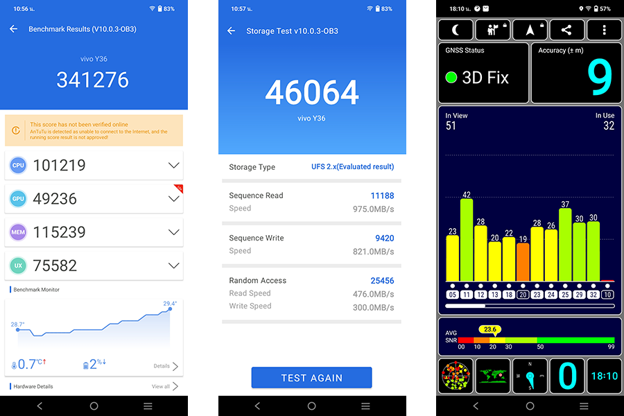 - ทดสอบประสิทธิภาพการทำงานด้วยแอปพลิเคชัน AnTuTu Benchmark ได้คะแนนรวม 341,276 คะแนน