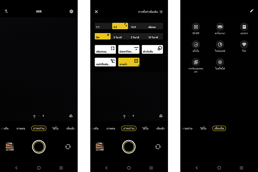 หน้าเมนูกล้องถ่ายภาพ