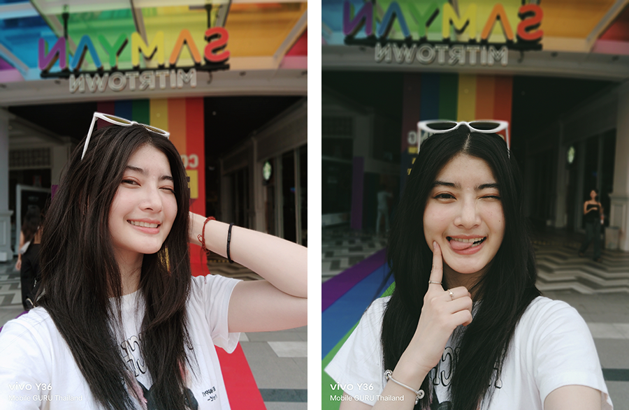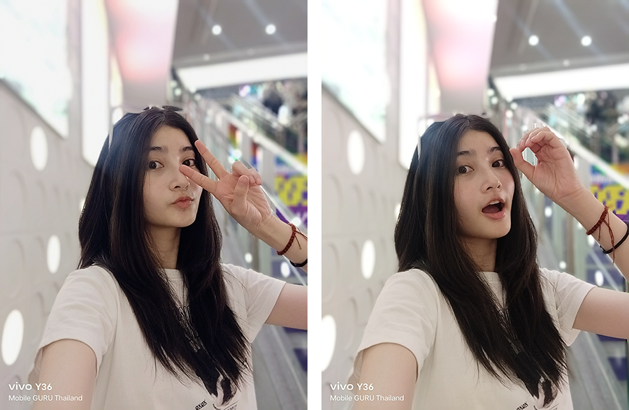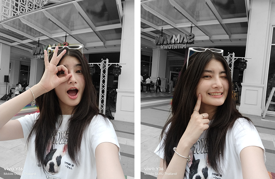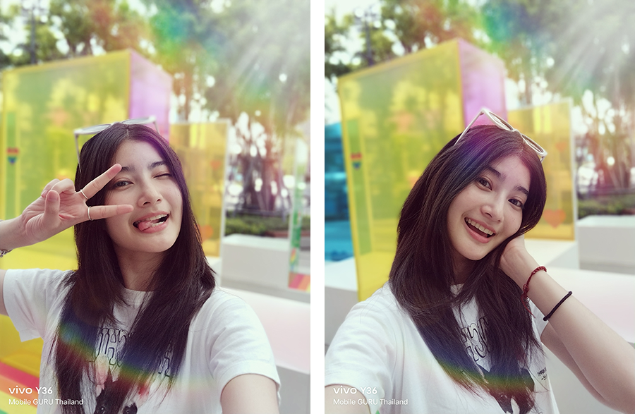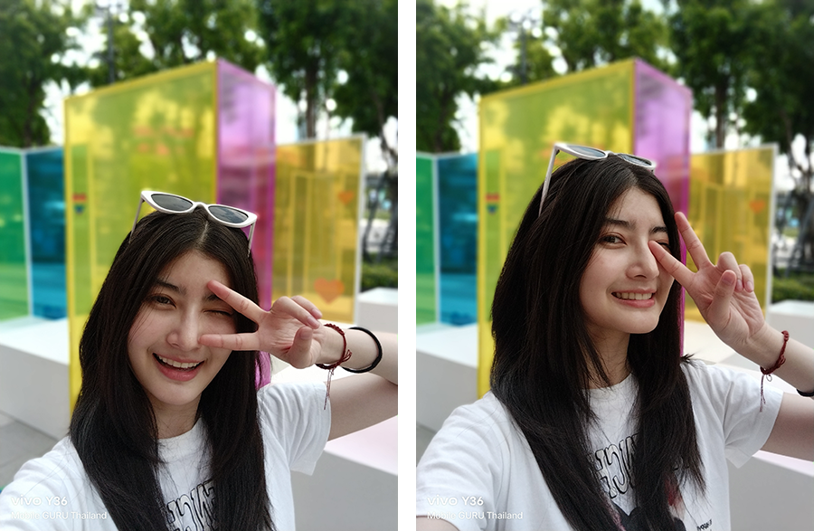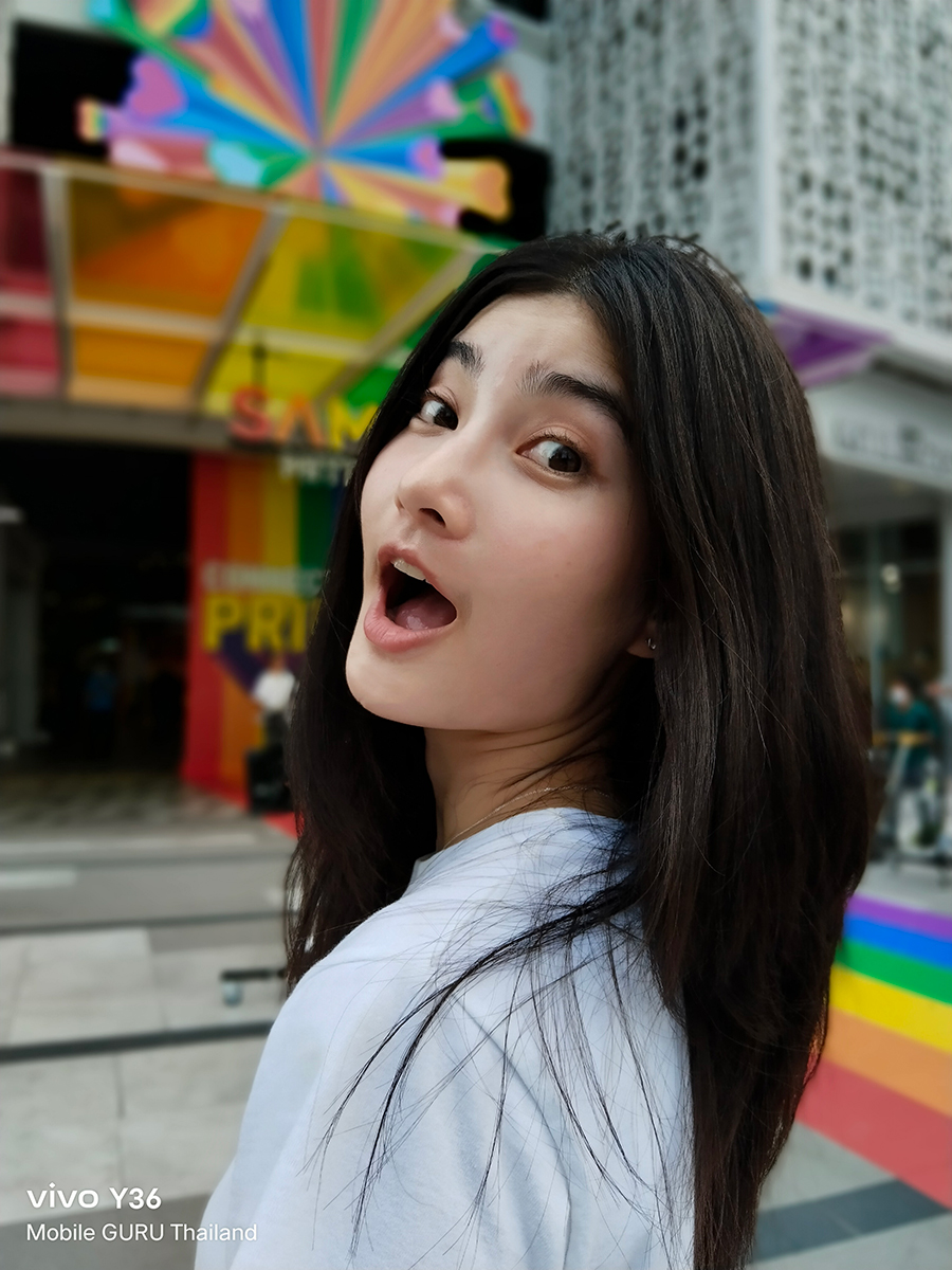ส่วนกล้องถ่ายภาพต้องยกให้ว่าทำได้ดีมาก ๆ ค่ะ โดยเฉพาะการถ่ายภาพพอร์ตเทรตที่มีลูกเล่นให้เลือกหลากหลาย ซึ่งเราสามารถเลือกสร้างสรรค์มุมมองใหม่ ๆ ได้ตามความต้องการ หน้า UI ของกล้องใช้งานง่ายมาก ๆ จุดนี้ต้องขอชมเชยเลยค่ะ โหมด Bokeh ก็ทำได้ดีเช่นกัน ผลลัพธ์ภาพที่ออกมาดูสวยงาม เป็นธรรมชาติ และอีกหนึ่งจุดที่ชื่นชอบมาก ๆ ก็คือ การที่เราสามารถเลือกปรับแก้จุดโฟกัสและค่า f ของภาพที่ถ่ายในโหมด Bokeh ทีหลังได้ (กล้องหลัง) สำหรับการใช้งานจริงถือว่าได้ใช้งานแน่ ๆ ล่ะ เพราะบางครั้งเราอาจจะเลือกโฟกัสผิดจุด ทำให้ส่วนที่เราต้องการให้ชัด ไม่ชัด ภาพที่ออกมาก็คือจะเสียไปเลย ในขณะที่ vivo Y36 (และอีกหลาย ๆ รุ่นของ vivo) สามารถปรับแก้หลังกล้องได้ ภาพที่บางครั้งดูว่าอาจจะใช้ไม่ได้ พอปรับใหม่แล้วสวยวิ้งเลยแหละ