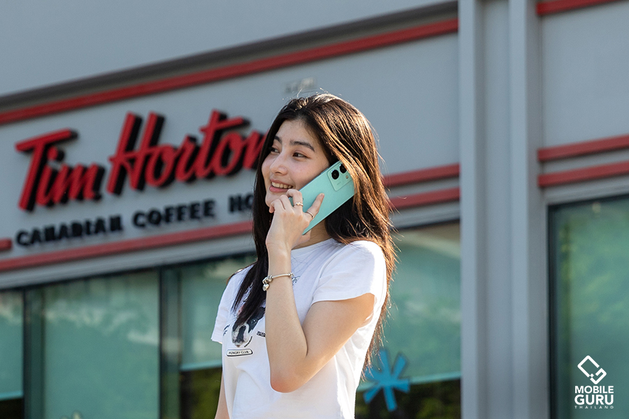 และเครื่องที่เราได้มารีวิวเป็นสีเขียว Glitter Aqua สวยงามเกินราคามาก ๆ สัมผัสของฝาหลังเรียบเนียน สีสันสดใส เปล่งประกายระยิบระยับ เล่นกับแสงที่ตกกระทบอย่างสวยงาม ตัวเครื่องไม่ทิ้งคราบมันหรือคราบรอยนิ้วมือให้รำคาญใจ และยังทนทานต่อรอยขีดข่วนได้ดี นอกจากนี้ ยังรองรับมาตรฐานการป้องกันฝุ่นและน้ำระดับ IP54 อีกด้วยค่ะ