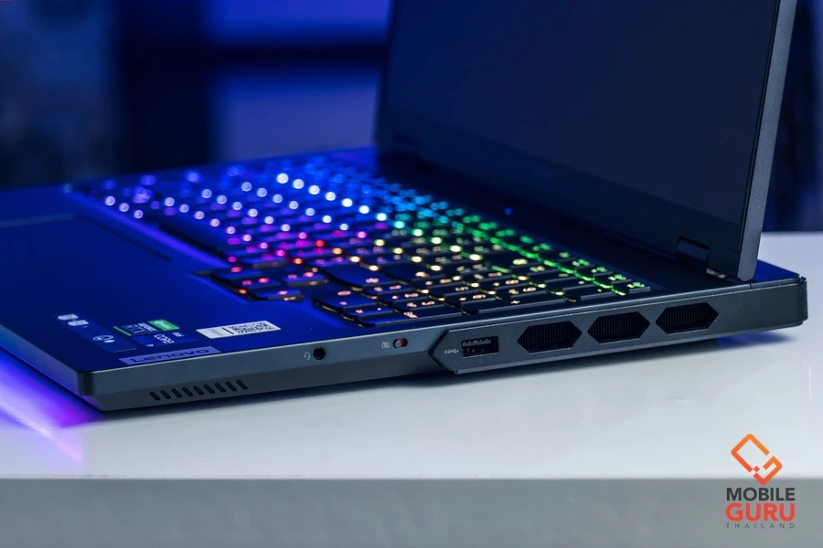 จุดเด่นอื่นๆ ที่น่าสนใจได้แก่ คีย์บอร์ด Legion TrueStrike ไฟ Per-Key RGB (เปลี่ยนเอฟเฟ็กต์ไฟได้ 6 แบบ) โดยเราสามารถปรับแต่งได้ด้วยตัวเอง และนอกจากคีย์บอร์ด ยังมีไฟ RGB ด้านหน้าตัวเครื่อง ซึ่งสามารถปรับแต่งเองได้เช่นกัน สวยงามมากๆ เลยครับ นอกจากนี้ยังสามารถเปลี่ยนคีย์แคป และตัวสวิตช์ของคีย์บอร์ดได้ด้วยตัวเองนะครับ โดยในกล่องจะมีอุปกรณ์มาให้ ถือว่าล้ำหน้ามากๆ เลยครับ และรุ่นนี้มาพร้อมแบตเตอรี่ความจุ 99.9Wh ให้มามากกว่ารุ่นก่อนนะครับ ใช้งานได้ยาวนานยิ่งขึ้นแน่นอน