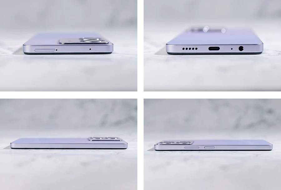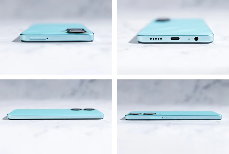 ด้านบนของตัวเครื่องมีถาดสำหรับใส่ซิมการ์ดแบบ Triple Slot รองรับ 2 nano SIMs + 1 microSD Card ส่วนด้านล่างของตัวเครื่องมีช่องเสียบหูฟังขนาด 3.5 มิลลิเมตร, ไมโครโฟนสนทนา, พอร์ตเชื่อมต่อสำหรับชาร์จแบตเตอรี่และถ่ายโอนพลังงาน/ข้อมูลแบบ USB Type-C และลำโพงเสียง ส่วนทางด้านซ้ายของตัวเครื่องไม่มีพอร์ตหรือปุ่มสำหรับการใช้งานใด ๆ ในขณะที่ทางด้านขวาของตัวเครื่องจะมีปุ่ม Volume สำหรับปรับเพิ่ม-ลดระดับเสียง และปุ่ม Power สำหรับเปิด-ปิดเครื่อง พร้อมใช้เป็นสแกนลายนิ้วมือในตัว