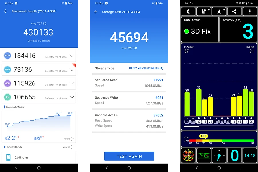 • ทดสอบประสิทธิภาพการทำงานด้วยแอปพลิเคชัน AnTuTu Benchmark ได้คะแนนรวม 430,133 คะแนน