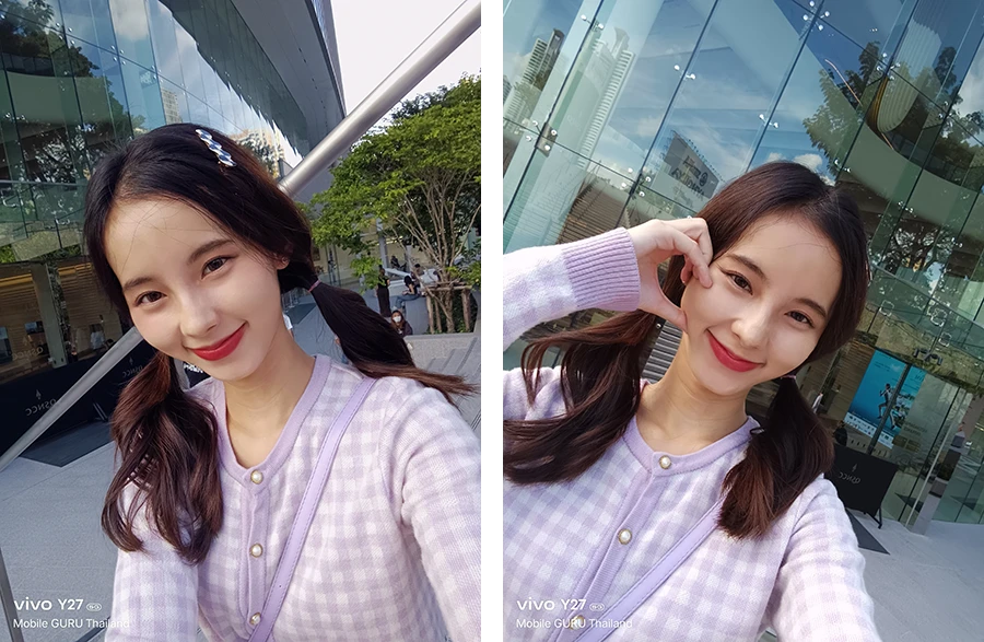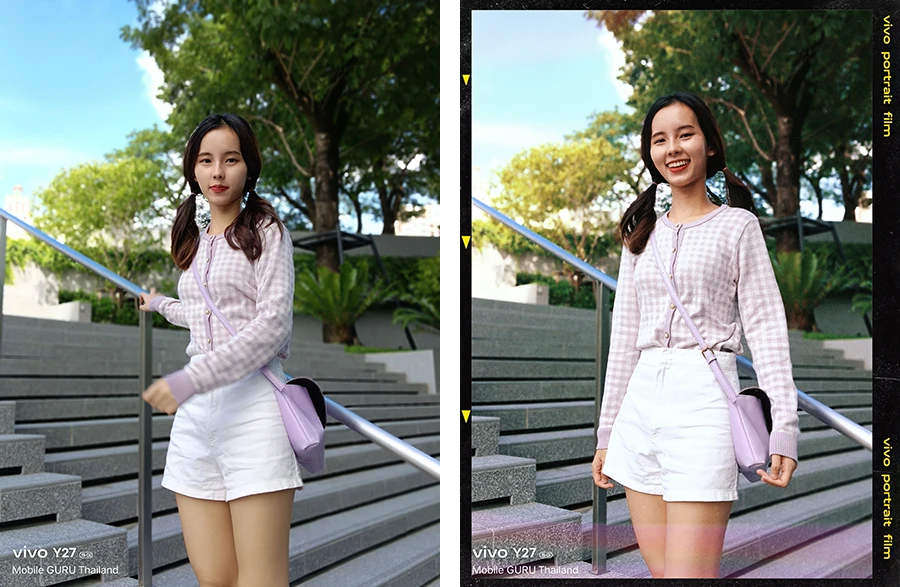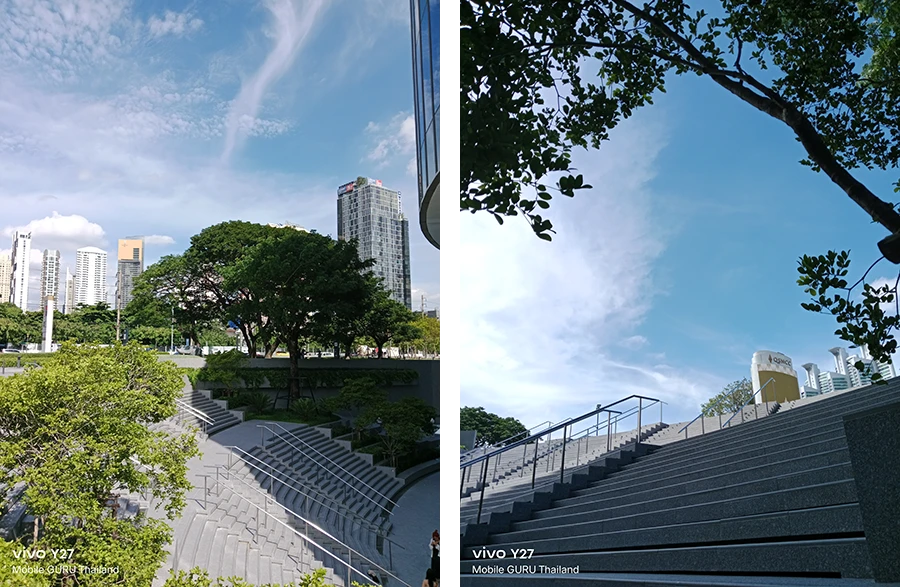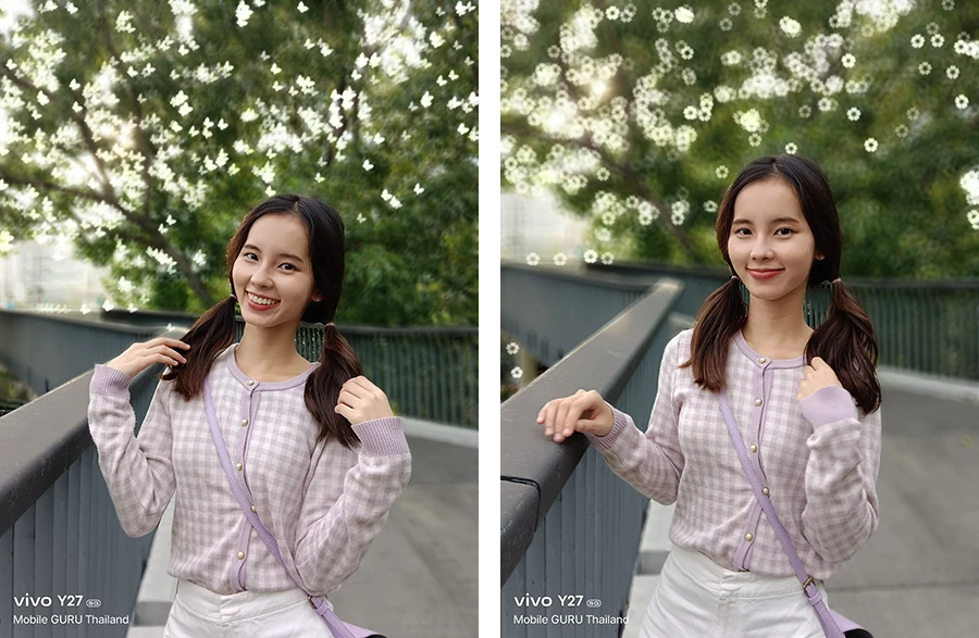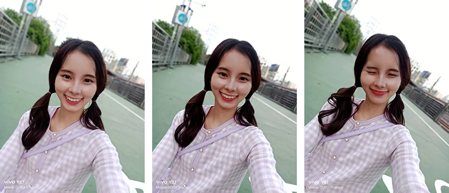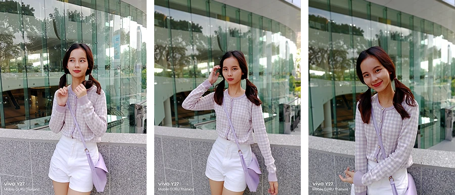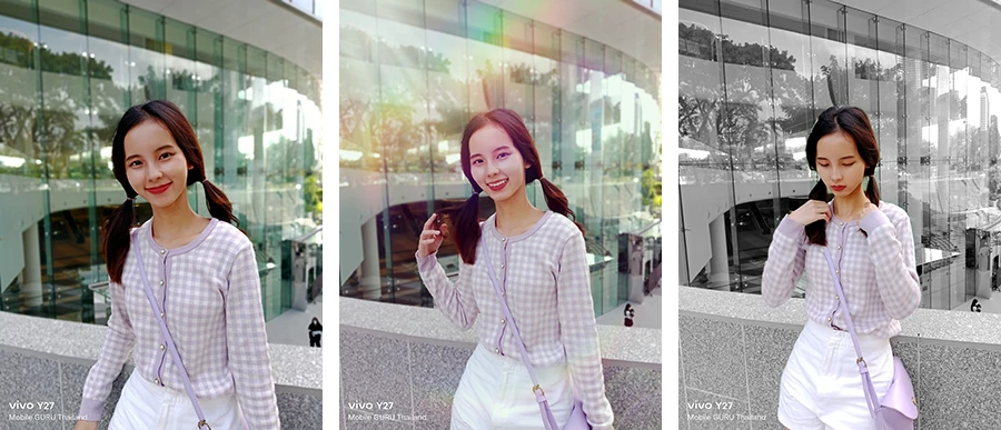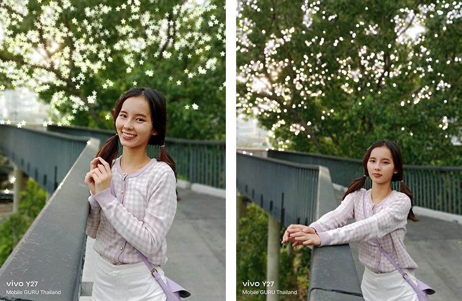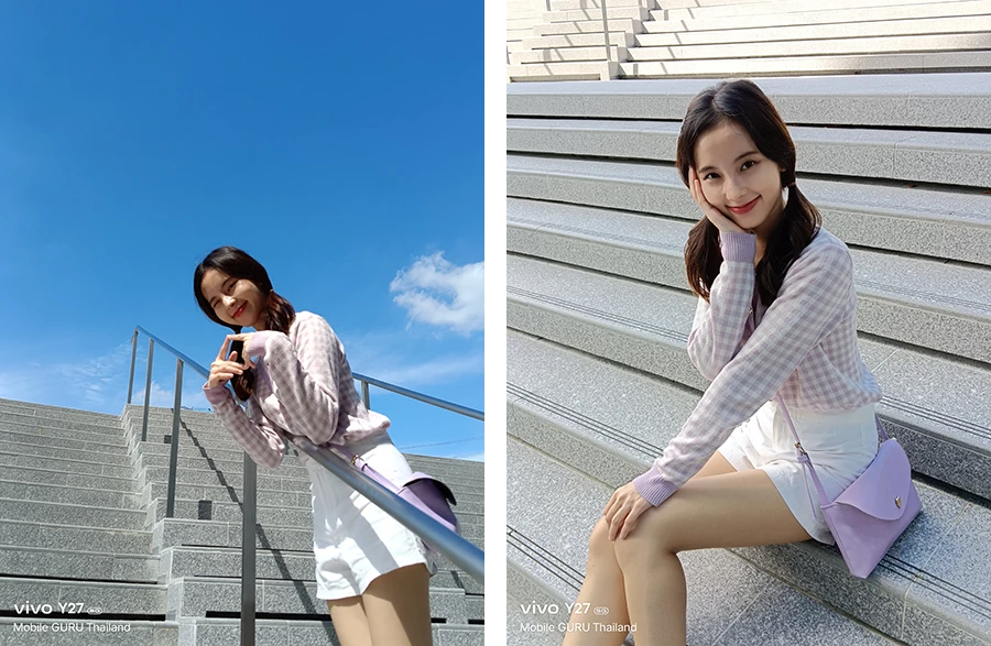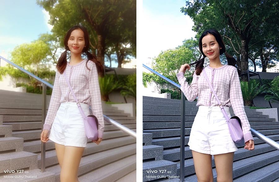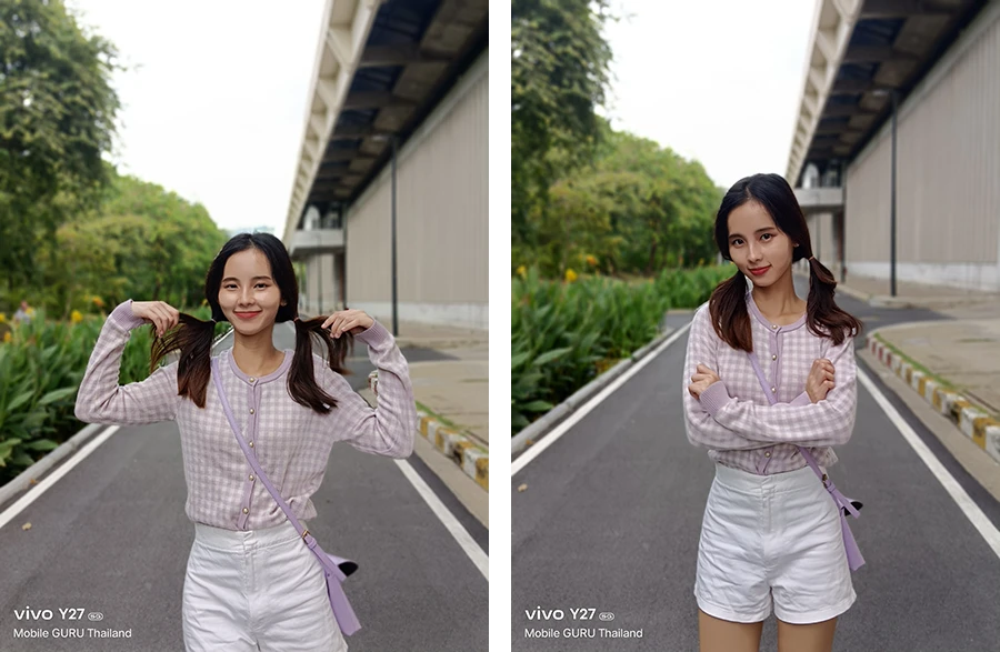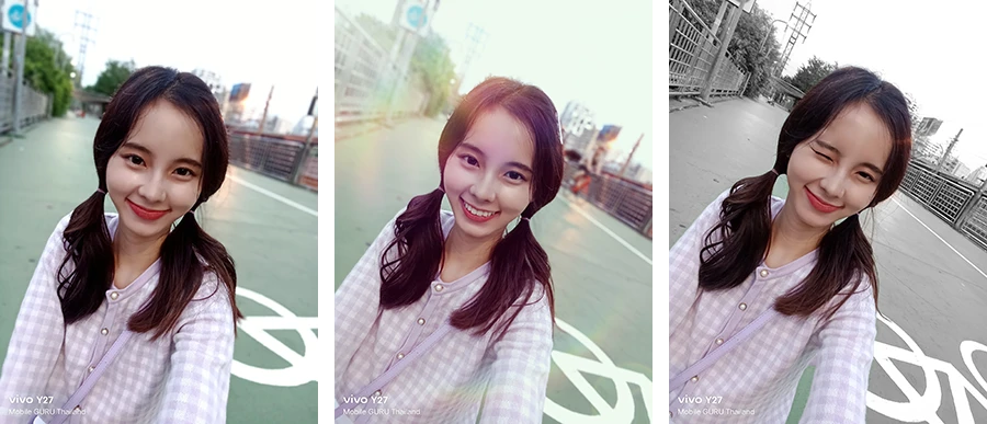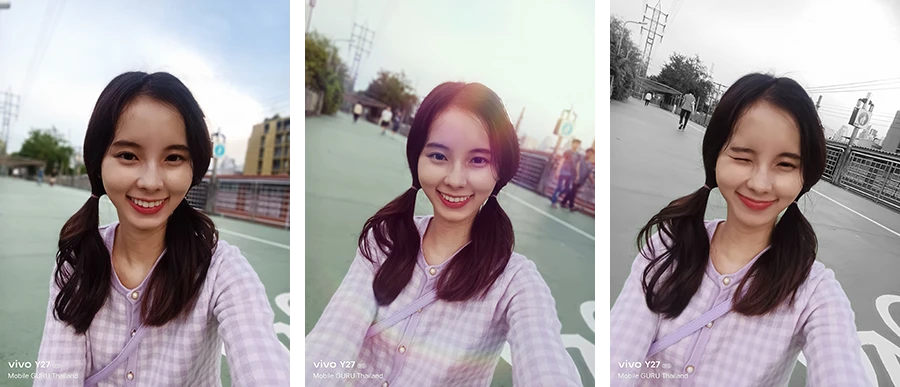 สำหรับ vivo Y27 รุ่นเริ่มต้น ก็มาพร้อมกับสเปกกล้องแบบเดียวกัน แต่จะมีโหมดถ่ายภาพที่แตกต่างกัน โดยกล้องหลังประกอบด้วย เลนส์หลักความละเอียด 50MP ค่ารูรับแสงกว้าง f/1.8 และเลนส์ Bokeh ความละเอียด 2 ล้านพิกเซล ค่ารูรับแสงกว้าง f/2.4 และมีไฟแฟลช LED ในตัว มาพร้อมโหมดถ่ายภาพให้เลือกสนุกหลากหลาย ไม่ว่าจะเป็น 50MP, Bokeh Flare Portrait, Night และอื่นๆ ด้านหน้ามาพร้อมกล้องความละเอียด 8MP ค่ารูรับแสงกว้าง f/2.0
