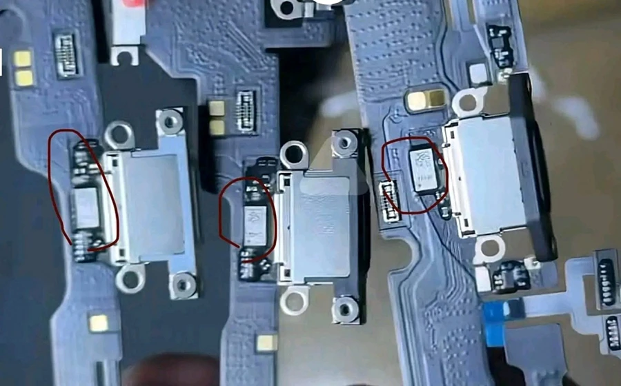 - จากข้อมูลเผยให้เห็นถึงภาพของแผงวงจรเชื่อมต่อ USB-C ไอโฟนรุ่นใหม่ ที่มาพร้อมชิป Retimer ที่มักใช้สำหรับการปรับปรุงคุณภาพสัญญาณในอุปกรณ์ที่มี Thunderbolt ซึ่งหมายความว่า iPhone รุ่นที่กำลังจะเปิดตัวนี้ จะเป็นพอร์ต Thunderbolt