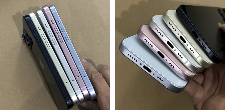 - แต่สำหรับ iPhone ที่ไม่ใช่รุ่น Pro จะมาพร้อมกับตัวเครื่องที่ดูมีสีสันสดใสมากกว่า ดังจะเห็นได้จาก สีเหลืองเข้มของ iPhone 14 และ iPhone 14 Plus โดย iPhone 15 จะมาในสี Blue, Pink, White, Green และ Black ส่วนในรุ่น Pro ก็จะมาในสี Space Black, Silver Blue และ Titan Grey ที่พูดถึงด้านบนนั่นเอง
