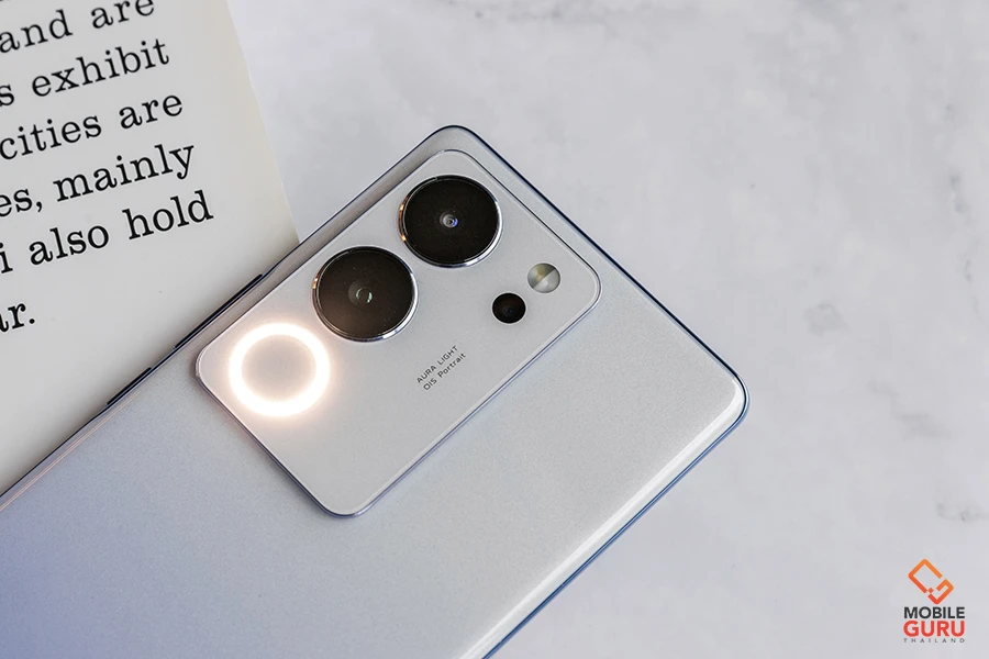 สำหรับวงแหวนออร่าขนาดใหญ่นี้ เป็นเทคโนโลยีเฉพาะของ vivo ที่เรียกว่า "Aura Light Portrait System 2.0" ซึ่งในรุ่นนี้ ได้มีการพัฒนามาถึงเวอร์ชั่น 2.0 แล้ว ซึ่งตัวแสงจะออกมากว้างกว่าเดิมถึง 9 เท่า พร้อมความสว่างที่มากขึ้นถึง 36% โดยยังมาพร้อม "Smart Color Temperature Adjustment" ระบบการตรวจจับสภาวะแสงและปรับอุณหภูมิสีให้เหมาะสมกับสภาพแวดล้อมอัจฉริยะ สามารถปรับแสงออร่าให้เป็นสีโทนเย็นและโทนอุ่นได้หลายระดับตามความต้องการ ตั้งแต่ 1800 - 4500 เคลวิน ช่วยทำให้ใบหน้าและโทนสีผิวสว่าง ละมุน และเป็นธรรมชาติยิ่งขึ้น โดยยังมาพร้อมกับโหมดถ่ายภาพที่น่าสนใจให้เลือกเล่นอีกหลากหลายเลยค่ะ ส่วนด้านหน้ามาพร้อมกล้องความละเอียด 50MP AF ค่ารูรับแสงกว้าง f/2.0 ที่นอกจากจะถ่ายภาพเซลฟี่คนเดียวได้สวยงามคมชัดแล้ว ยังมาพร้อม Wide-angle 92° ช่วยให้สามารถเก็บภาพ Group Selfie และ Group Video ได้ดีขึ้นอีกด้วย