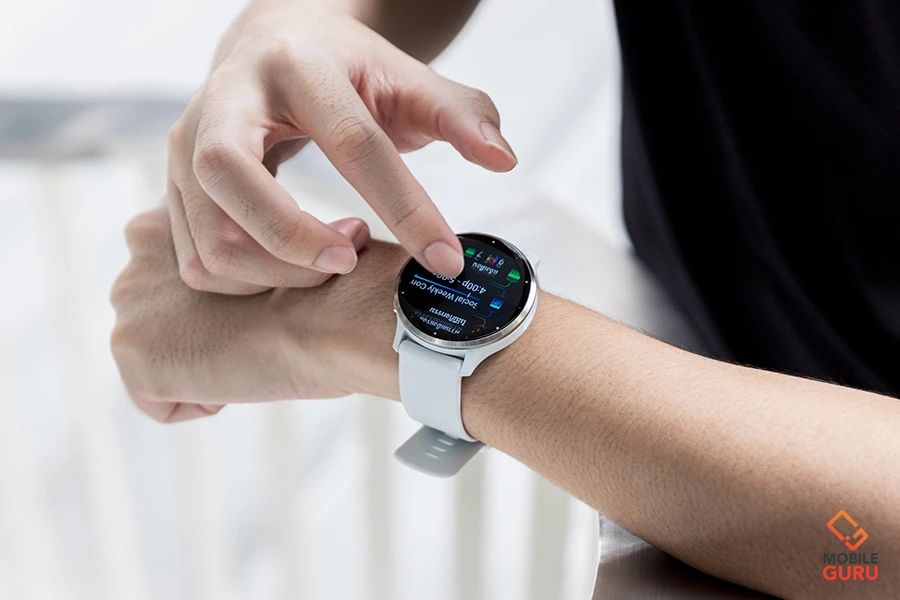 สำหรับหน้าจอของ Venu 3 รองรับการควบคุมการใช้งานด้วยการปัดขึ้นหรือลงเพื่อเลื่อนดูภาพรวม คุณสมบัติ และเมนูต่าง ๆ