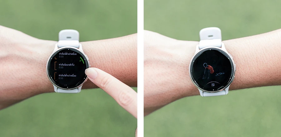 Garmin Venu 3 รองรับฟีเจอร์แนะนำการออกกำลังกายตามแอนิเมชันบนหน้าปัดนาฬิกา (Workouts Muscle Maps and Animations on Watch) โดยสามารถใช้งานได้ในหลากหลายกิจกรรมมากขึ้น เช่น ออกกำลังกายเพื่อฝึกความแข็งแรงกล้ามเนื้อ (Strength Training) HIIT พิลาทิส และโยคะ หรือจะเลือกสร้างการออกกำลังกายทีละขั้นตอนจากรายการออกกำลังกายกว่า 1,600 รายการ ที่สามารถเลือกโหลดเพิ่มเติมจากแอป Garmin Connect และเชื่อมต่อมายังนาฬิกาก็ได้ด้วยเช่นกัน