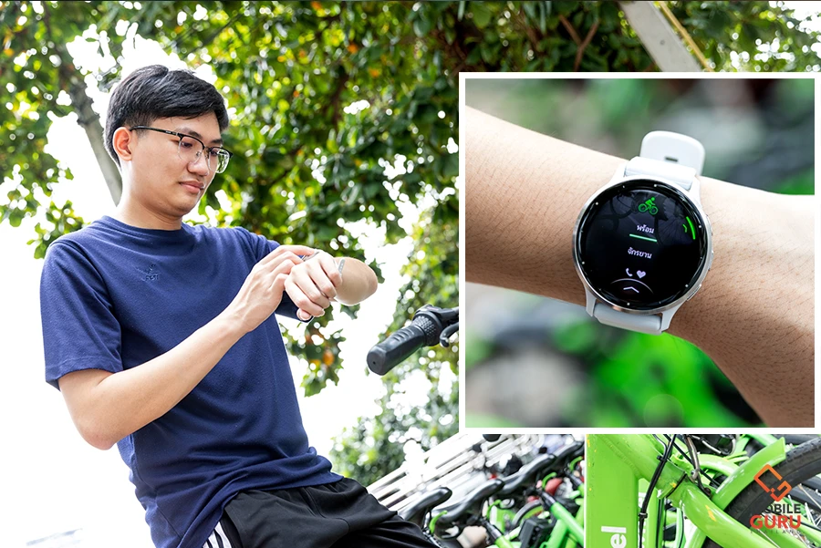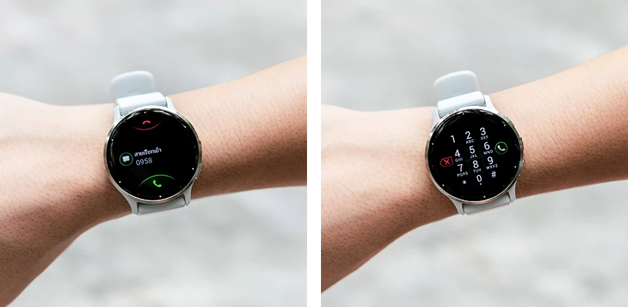 สำหรับการใช้งานกับหูฟัง เราสามารถเชื่อมต่อ Bluetooth กับสมาร์ตวอทช์ได้เลยค่ะ ซึ่งช่วยเพิ่มความสะดวกสบายมากยิ่งขึ้น ทำให้เวลาที่เรากำลังออกกำลังกายหรือทำกิจกรรมต่าง ๆ อยู่ ไม่จำเป็นต้องพกสมาร์ตโฟนไปด้วย รับสายผ่านการคอลไลน์ก็ได้ด้วยเช่นกัน (สำหรับการคอลผ่านไลน์จะใช้งานโดยตรงไม่ได้นะคะ จำเป็นต้องใช้งานผ่านหูฟังด้วย แต่ถ้าเป็นการโทรปกติสามารถใช้งานได้เลยค่ะ ไม่ต้องมีหูฟังก็ได้)