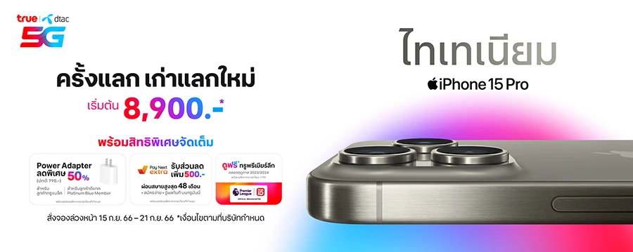 - เก่าแลกใหม่ อัพเกรดเป็น iPhone 15 เริ่มเพียง 0* บาท