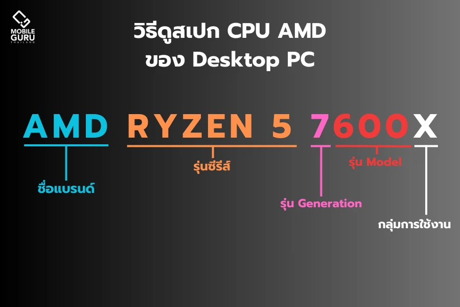 วิธีการอ่านรุ่น CPU AMD จะขอแบ่งเป็น 2 แบบคือ แบบ Desktop และ Laptop