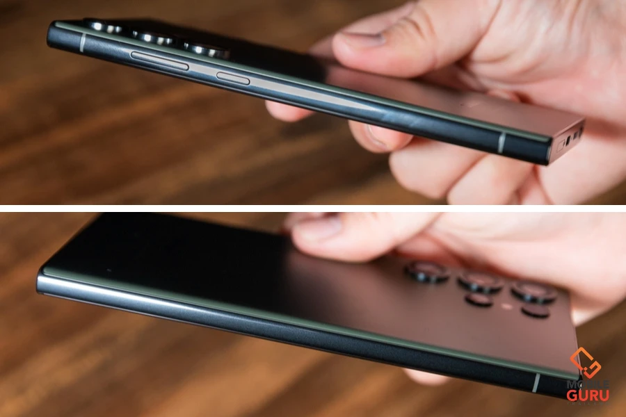 สำหรับ Samsung Galaxy S23 Ultra ก็มีดีไซน์ดูพรีเมียมไม่แพ้กัน น้ำหนัก 234 กรัม โดยรูปร่างจะคล้ายๆ กับ S22 Ultra รุ่นก่อนหน้า แต่ตรงขอบตัวเครื่องจะมีความเหลี่ยมขึ้นเล็กน้อย เพื่อจะจับถือที่ง่ายมากขึ้น เนื่องจากรุ่น S22 Ultra มีความโค้งมนเกินไป อาจทำให้จับถือแล้วลื่นมือได้ ใช้วัสดุอะลูมิเนียมจากการรีไซเคิล แข็งแกร่งด้วย CORNING GORILLA GLASS VICTUS 2 ทั้งด้านหน้าและด้านหลัง โดยสร้าง เฟรม Armor Aluminum ขึ้นมาอีกชั้นเพื่อการป้องกันที่ดีขึ้น