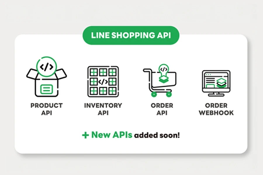 LINE SHOPPING API คือ ระบบที่ให้นักพัฒนาของร้านค้าสามารถเชื่อมต่อระบบกับร้านค้าบน LINE SHOPPING เพื่อจัดการข้อมูลต่างๆ ผ่านฟังก์ชั่น API ที่ทาง LINE SHOPPING สร้างขึ้น ซึ่งจะเอื้อประโยชน์ต่อการทำงานของนักพัฒนาไทยที่อยู่เบื้องหลังการพัฒนาระบบสินค้าของร้านค้าบน LINE SHOPPING ให้มีประสิทธิภาพดีขึ้น โดยผ่าน 4 API ได้แก่