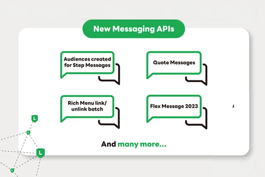 - Audience Created for Step Messages เปิดให้นักพัฒนาไทย สามารถนำข้อมูลกลุ่มเป้าหมายที่ได้จากการใช้งาน Messaging API มาประยุกต์ใช้กับการส่งข้อความหากลุ่มลูกค้าผ่านฟีเจอร์ Step Messages บน LINE OA ได้