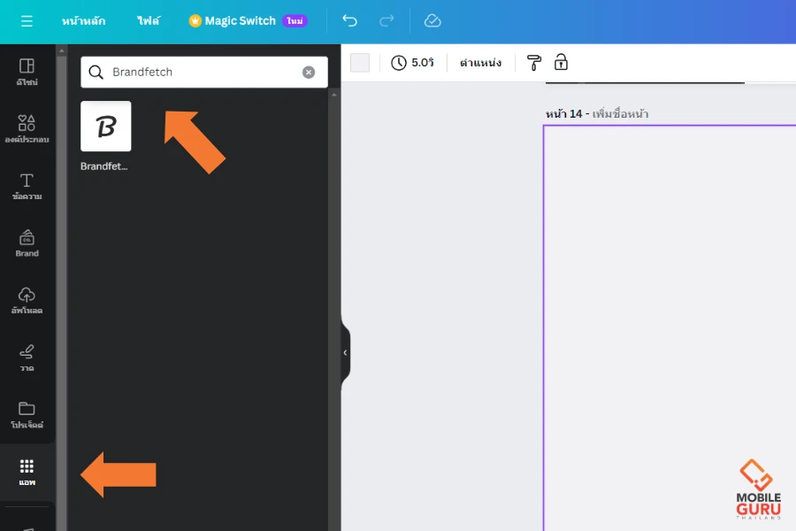 1. ไปที่แอปและค้นหาคำว่า "Brandfetch"