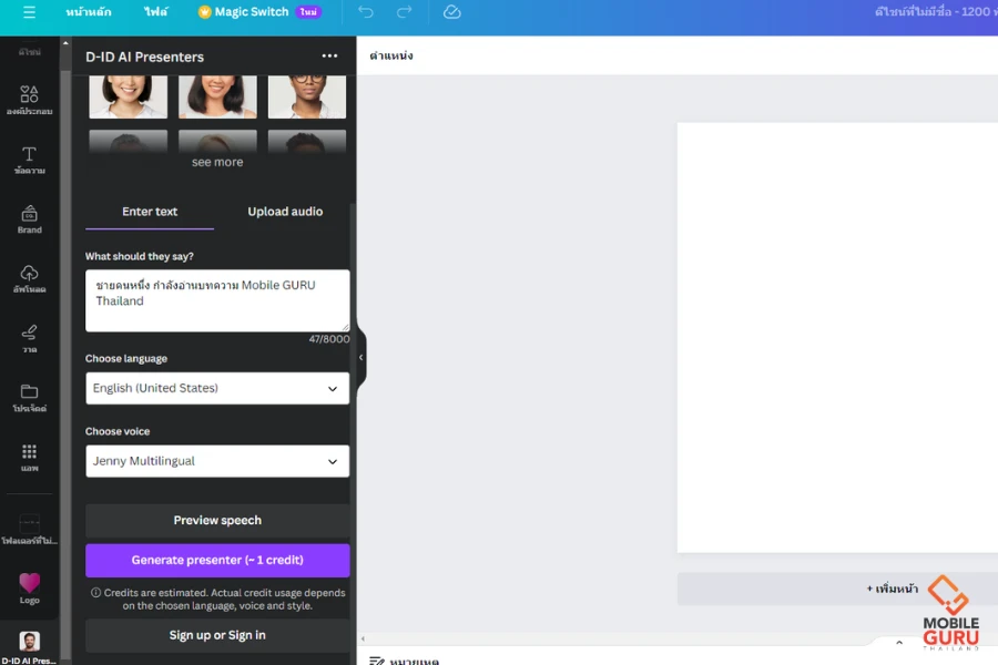 3. D-ID AI Present (พากย์เสียงด้วย AI)