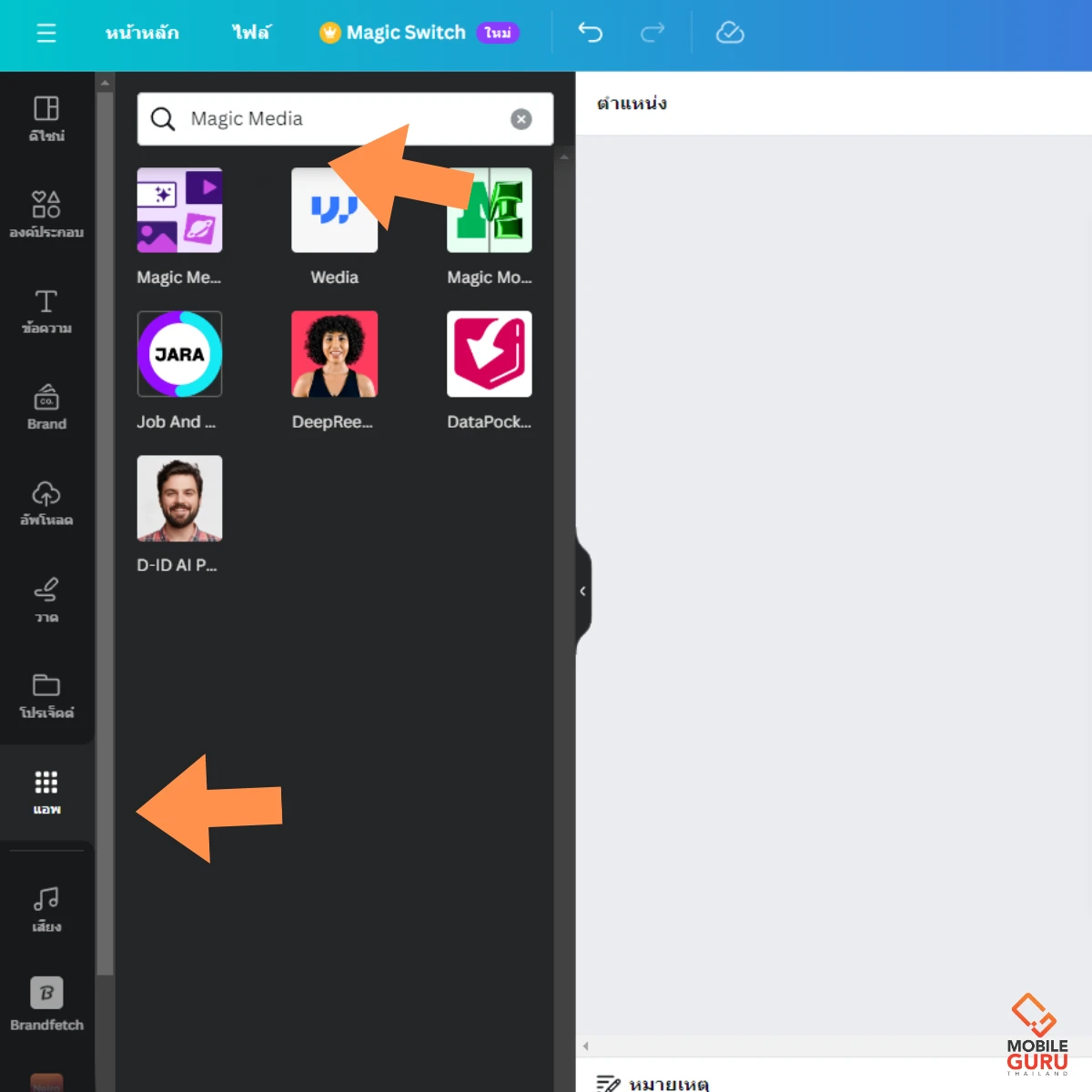 1. กดเลือกไปที่ “แอพ” พิมหาว่า “Magic Media”