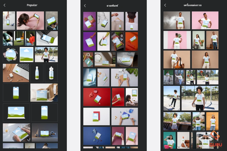 2. จะมี Mockups หลายแบบขึ้นมาให้เลือก อย่างลอง Mockups แบบไหนก็กดเลือกได้เลย