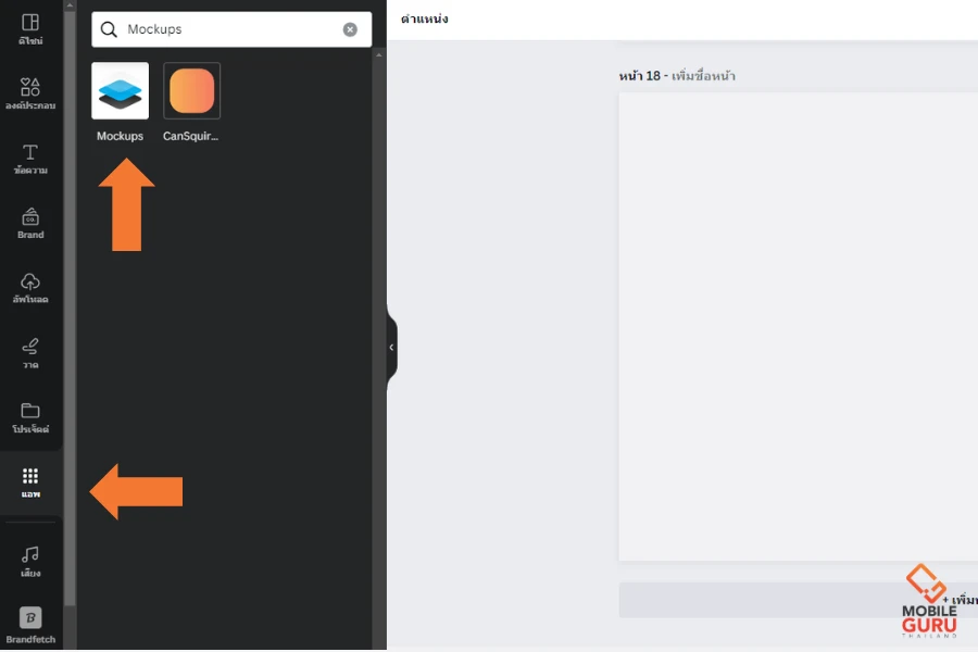 1. เข้าไปที่หมวดแอป ค้นหาคำว่า "Mockups"
