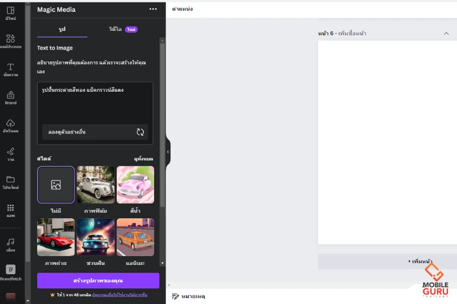 2. เมื่อคลิกเข้ามา จะมีช่องให้ใส่ข้อความ ซึ่งสามารถใส่ได้ตามความต้องการได้เลยครับ ว่าอยากให้ภาพออกมามีอะไรบ้าง และมีฟังก์ชันต่างๆ ให้เลือกเพิ่มเติมด้วย
