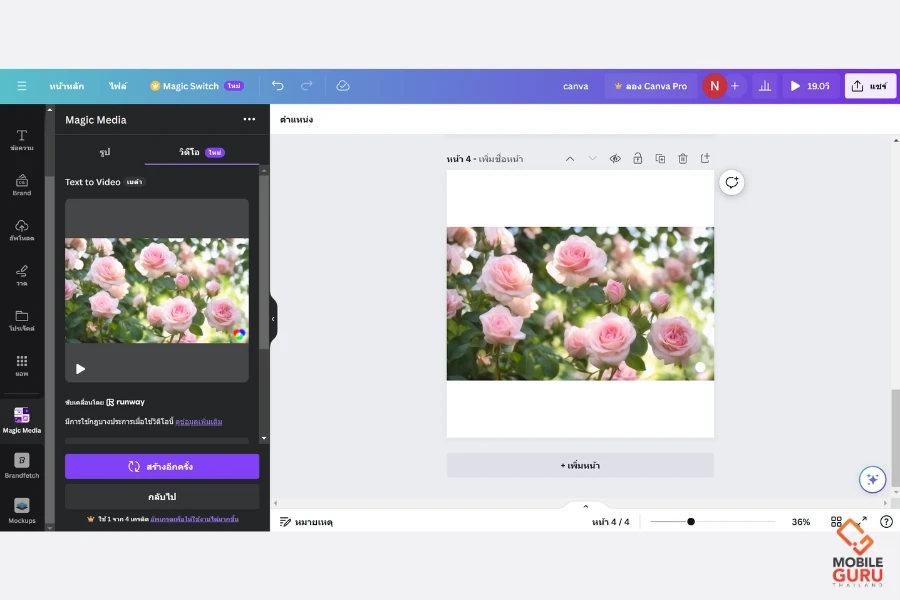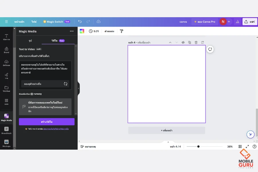 และนอกจากนี้จะสามารถ Generate ภาพได้แล้วยังสามารถสร้างเป็นแบบ VDO สั้นๆ ได้ด้วย เพียงแค่กดไปที่ ‘วิดีโอ” ที่แถบด้านบน สามารถพิมรายละเอียกที่ต้องการได้เช่นเดียวกับการทำรูปเลย