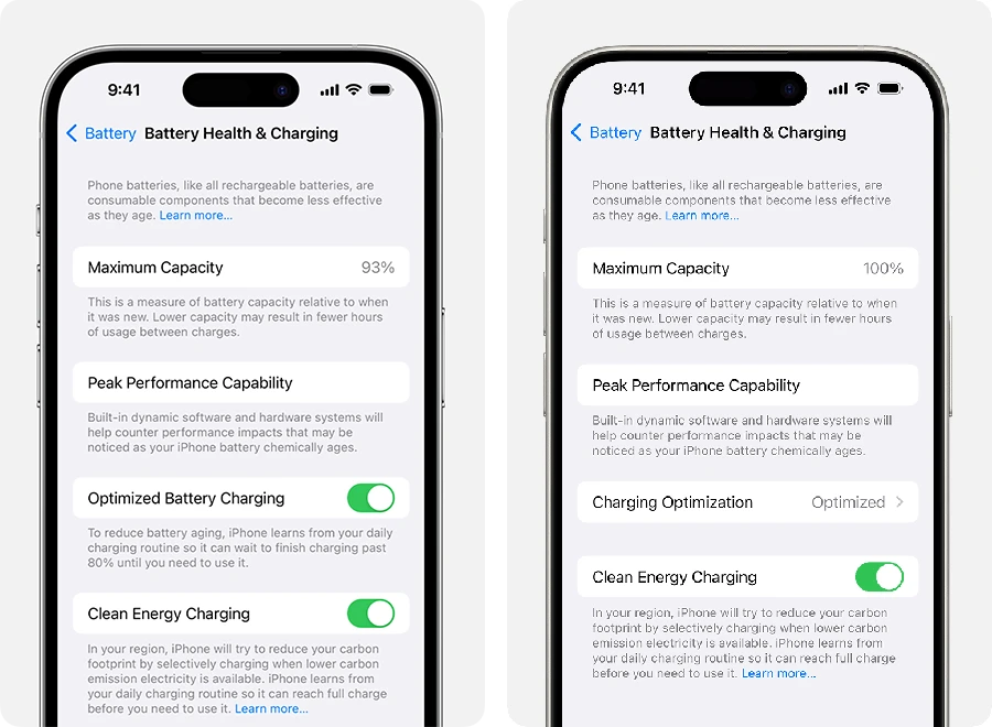 โดยจะแสดงข้อมูลเกี่ยวกับความจุของแบตเตอรี่ ถ้าไอโฟนมีค่าความจุแบตฯ ต่ำกว่า 80% แสดงว่ามีโอกาสที่แบตเตอรี่ของเราเริ่มจะเสื่อมแล้ว ยิ่งถ้ามีอาการอื่น ๆ ร่วมด้วย เช่น แบตฯ ลดเร็วกว่าปกติ ชาร์จแบตฯ เต็มเร็ว ชาร์จแบตฯ ไม่เต็ม เปอร์เซ็นต์แบตฯ ไม่คงที่ เครื่องค้างหรือดับบ่อย และหนักๆ เลยก็คือตัวเครื่องบวมหรือมีรูปทรงผิดปกติ ก็เตรียมตัวเตรียมใจพาน้องเข้าศูนย์แบบเร่งด่วนเลย