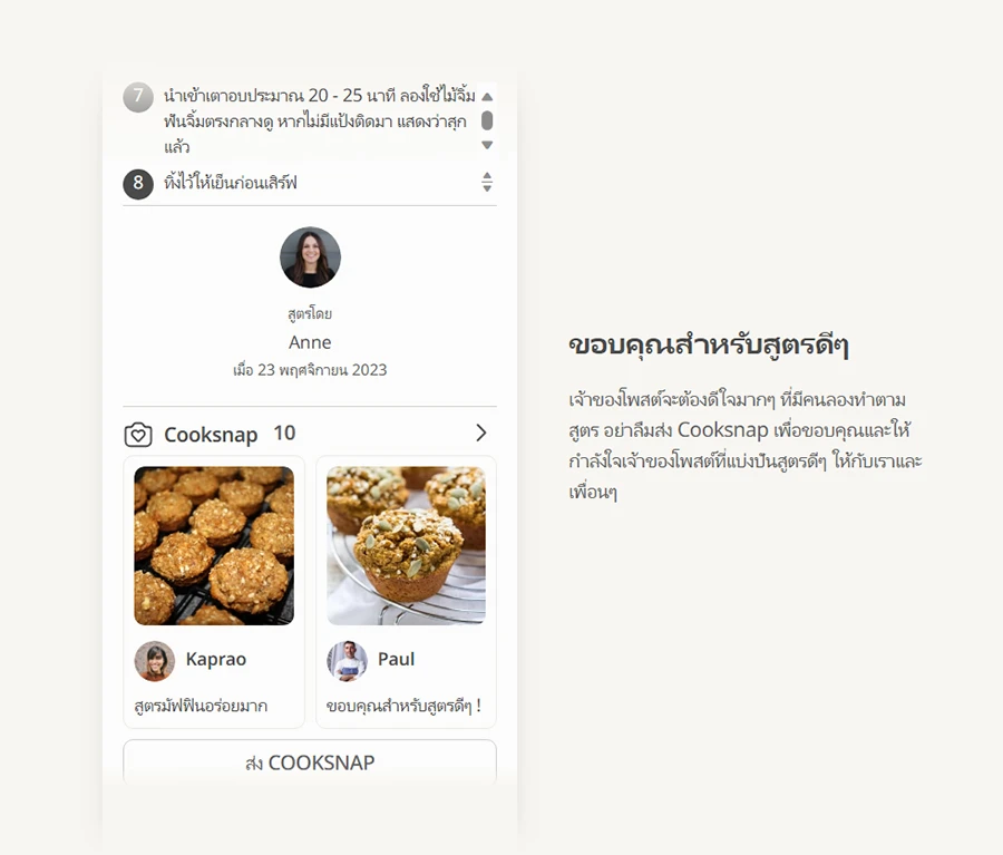 ส่ง Cooksnap แชร์ประสบการณ์ที่ได้ลองทำตามสูตรของคนอื่นได้