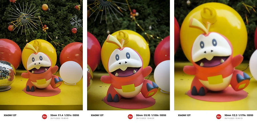 นอกจากนี้ Xiaomi 13T ยังมาพร้อมมุมภาพแบบใหม่สำหรับการถ่ายภาพบุคคล ได้แก่ 35 มม. เลนส์สารคดี ซึ่งเป็นระยะของเลนส์ที่ใกล้กับมุมมองของดวงตามนุษย์ และเก็บภาพได้ทั้งตัวแบบบุคคลและสภาพแวดล้อมรอบข้าง, 50 มม. เลนส์โบเก้หมุนวน ให้ตัวแบบมีความโดดเด่นชัดเจน พื้นหลังที่เบลอและหมุนวนเล็กน้อยเพื่อความรู้สึกโรแมนติก และ 90 มม. เลนส์นวลแสง ภาพถ่ายบุคคลที่ใช้รูรับแสงกว้างซึ่งจะช่วยขับเน้นตัวแบบ เหมาะกับการถ่ายภาพระยะใกล้มากกว่า