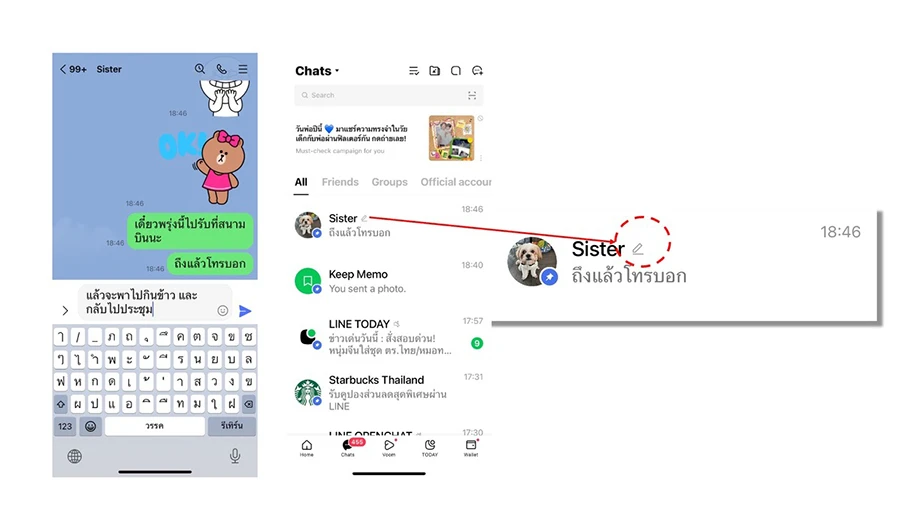 1. LINE Chat : เพิ่มไอคอนเตือน "พิมพ์ค้าง" - ทางลัดเข้าอัลบั้มภาพ