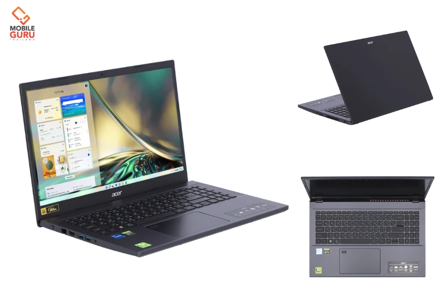 ACER ASPIRE 7 ตัวนี้เป็นตัวเด็ดอย่างทาง ACER เลยครับ เพราะสเปกมาได้ฟีลเกมมิ่งเลยครับ เริ่มจากหน้าจอ 15.6 นิ้ว พาเนล IPS ความละเอียด FHD Refresh rate สูงถึง 144Hz ด้านซีพียูใช้ Intel Core i5-1240P เป็นรหัส P (Performance) ซึ่งจะมีประสิทธิภาพดีกว่ารหัส "U" แต่ยังคงคำนึงเรื่องปนะหยัดพลังงานอยู่ ส่วนการ์ดจอมาด้วยการ์ดระดับเกมมิ่งอย่าง RTX 3050 ซึ่งจะเป็นรุ่นเริ่มต้นของซีรีส์ 3000 สามารถใช้เล่นเกม ปรับกราฟิกระดับกลางได้ครับ แต่ถ้าเป็นเกมออนไลน์ที่ไม่กินสเปกมากอย่าง Valorant, FIFA, LOL, DOTA 2, CS2 ก็เล่นได้สบายๆ ครับ แต่ถ้าเล่นเกมหนักๆ เลยอาจจะไม่ค่อยดีเท่าไรครับ ด้วยตัวเครื่องที่ออกแบบมาสำหรับทำงาน ระบบระบายความร้อนอาจไม่ได้ดีเหมือนตัวโน้ตบุ๊กเกมมิ่งครับ
