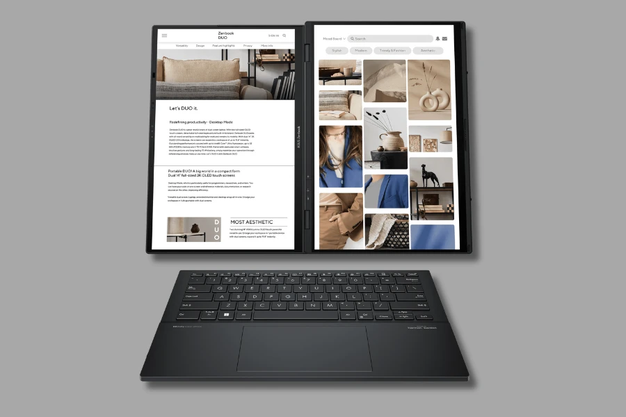 เรียกได้ว่า ASUS Zenbook DUO 2024 เป็นโน้ตบุ๊กที่ครอบคลุมการทำงานแบบ Multi Task ได้อย่างดีเยี่ยมครับ เพราะสามารถพื้นที่การทำงานของหน้าจอได้หลากหลายๆ จะเปิดงานโปรแกรมทำงานไปพร้อมกันก็ทำได้สบาย ไม่ว่าจะใช้เป็นแนวนอน แนวตั้ง ต่อกับคีย์บอร์ดเป็นโน้ตบุ๊กทั่วไป อีกทั้งยังใช้ระบบสัมผัสในการใช้งานได้ด้วย และมีราคาเริ่มต้นที่ 2,999 ดอลลาร์ หรือประมาณ 107,400 บาท