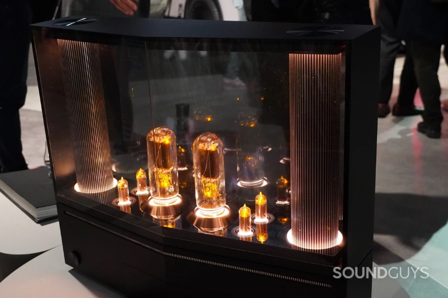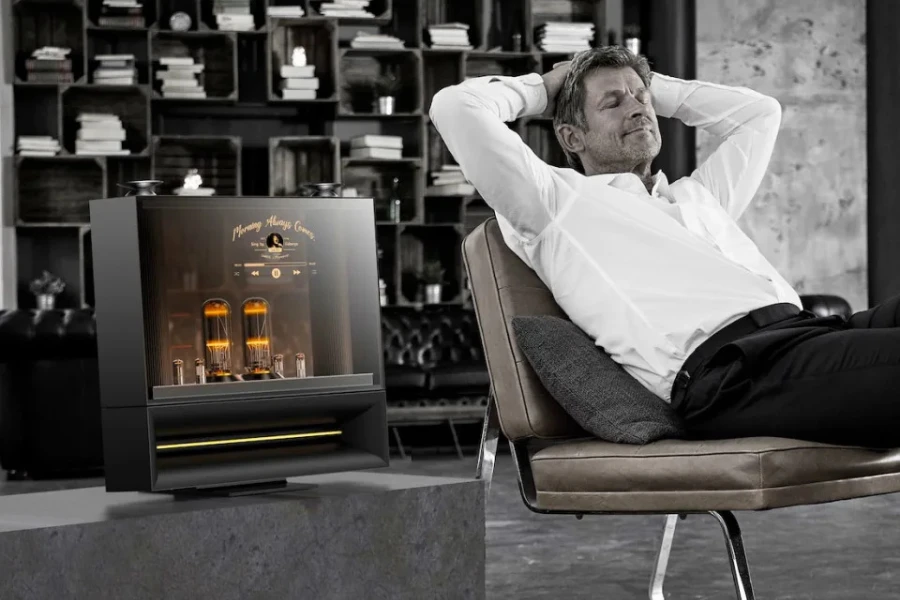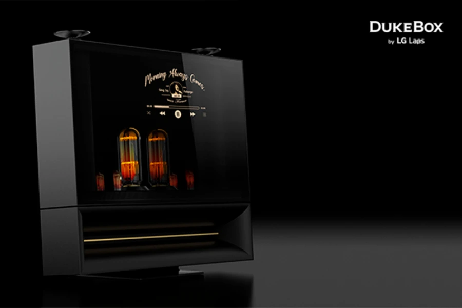 LG DukeBox เป็นลำโพงแบบ 360 องศา มีดีไซน์ย้อนยุคที่ผสมผสานระหว่างหลอดสูญญากาศเพื่อสร้างเสียงที่อบอุ่นและไพเราะเหมือนกับมีนักดนตรีมาเล่นให้ฟังแบบสดๆ กับเทคโนโลยี OLED ล้ำสมัย โดยแผง OLED สามารถปรับระดับความโปร่งใสได้ อีกทั้ง LG DukeBox ยังรองรับเทคโนโลยี Dolby Atmos ซึ่งให้ประสบการณ์เสียงรอบทิศทางที่สมจริงยิ่งขึ้น