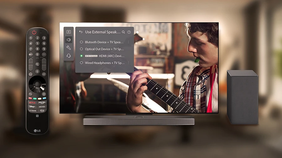 เมื่อมีอุปกรณ์ดี ๆ สำหรับรับชมความบันเทิงแล้ว ก็อย่าลืมให้ความสำคัญกับการตกแต่งห้องนั่งเล่นให้เป็นระเบียบเรียบร้อยในสไตล์ที่ชื่นชอบ หนึ่งในเคล็ดลับของการทำให้ห้องเป็นระเบียบอยู่เสมอก็คือการจัดวางเครื่องใช้ไฟฟ้าแบบซ่อนสายไฟให้เป็นระเบียบ ซึ่งคุณสมบัติ WOW Bracket ของทีวีและซาวด์บาร์แอลจีจะช่วยให้สามารถจัดวางและเชื่อมต่ออุปกรณ์ต่าง ๆ ในตำแหน่งที่เหมาะสม แถมยังเพิ่มพื้นที่ใช้สอยได้อย่างมีประสิทธิภาพที่สุด นอกจากนี้ การทำความสะอาดเฟอร์นิเจอร์และเครื่องใช้ไฟฟ้าอยู่เสมอ เพื่อให้ไม่มีฝุ่นเกาะก็จะช่วยให้ห้องน่าอยู่ และยังเพิ่มความฟินให้กับประสบการณ์รับชมความบันเทิงผ่านโฮมเธียเตอร์ในห้องได้ด้วย