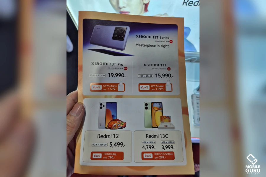 Xiaomi 13T ความจุ 12GB/256GB ราคา 15,990 บาท / Xiaomi 13T Pro ความจุ 12GB/512GB ราคา 19,990 บาท