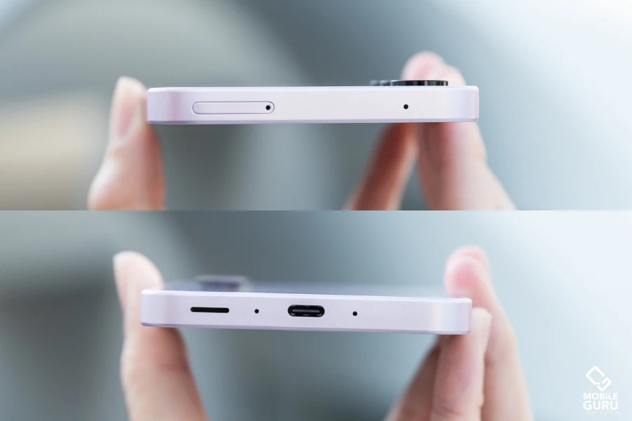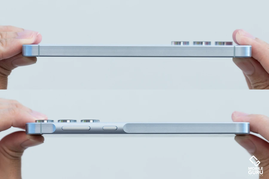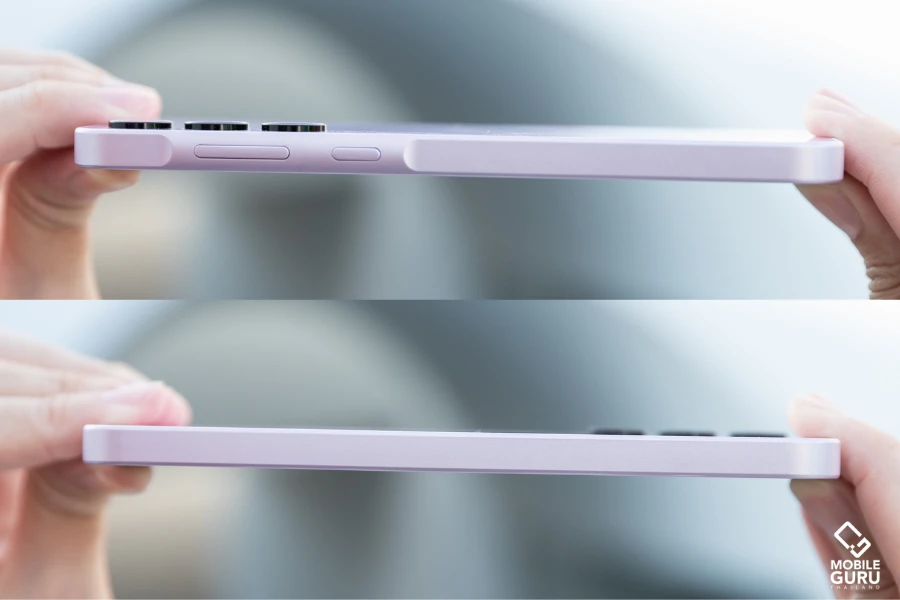 ดีไซน์ที่ปรับมาใหม่จะมีบริเวณด้านข้างตัวเครื่องฝั่งขวา จะมีความนูนขึ้นมาเล็กน้อยตรงบริเวณปุ่มล็อคหน้าจอ และปุ่มเพิ่ม/ลดเสียง ของทั้ง Samsung Galaxy A55 5G และ Galaxy A35 5G