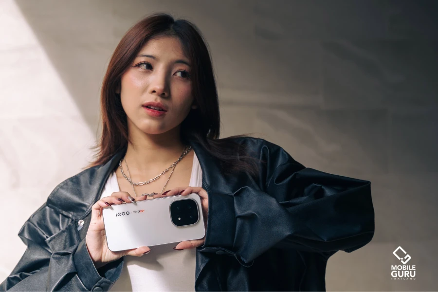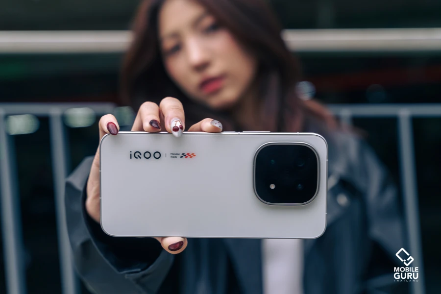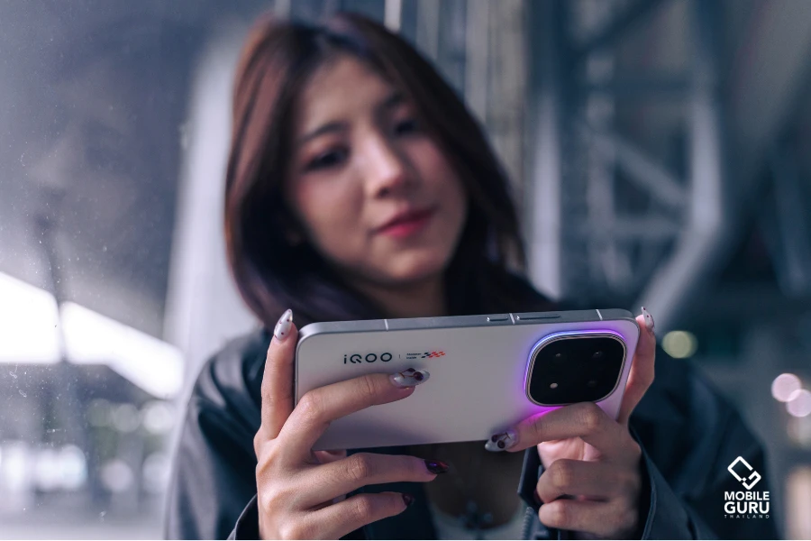 ด้านดีไซน์ตัวเครื่องของ iQOO 15 ที่ได้มาลองเป็นสีขาว Legends ที่ได้แรงลันดาลใจสีของรถแข่ง ให้ลุคเกมมิ่ง เท่แบบคลีนๆ ฝาหลังวัสดุแบบกระจกผิวด้าน ทำให้ไม่เกิดรอยนิ้วมือ มี Logo iQOO และ Monster Inside ส่วนบริเวณโมดูลกล้องมีลักษณะโค้งมน และซ่อนไฟแบบไดนามิก Monster Halo ไว้ด้านหลังโมดูลกล้อง ซึ่งจะเห็นได้ชัดหากมองจากด้านข้าง เป็นไฟ RGB ที่เสริมความเป็นเกมมิ่งได้อย่างลงตัว เหมาะกับผู้ที่ไม่อยากให้ไฟ RGB โดดเด่นเกินไป ส่วนขอบตัวเครื่องเป็นวัสดุอลูมิเนียมอัลลอยด์ มีความแข็งแรง ขอบมุมทั้ง 4 มุม มีลักษณะโค้งมน ถือเมื่อเล่นเกมได้ดี
