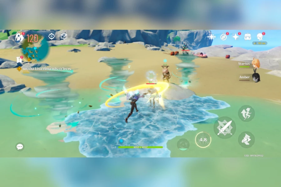 - เกม Genshin Impact ความละเอียดสูง 2K 120fps ใช้เวลาประมาณ 30 นาที แบตเตอรี่ลดไปประมาณ 6%