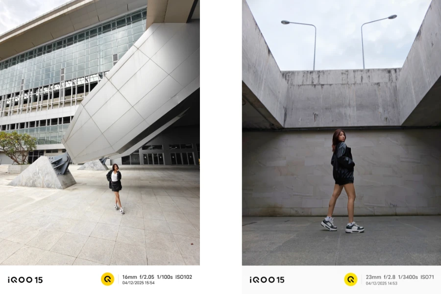 ด้านกล้องหลังของ iQOO 15 มีมา 3 กล้อง โดยกล้องหลักเซนเซอร์ Sony IMX921 1/1.56" ความละเอียด 50MP f/1.88 + กล้อง Ultrawide 50MP f/2.05 + กล้อง Telephoto (3x) Sony IMX882 1/1.92" ความละเอียด 50MP จากการใช้งาน iQOO 15 เป็นมือถือเกมมิ่งที่ให้กล้องมาครบทั้ง 3 เลนส์ ด้านการถ่ายภาพถือว่าทำได้ดีเลยสำหรับมือถือเกมมิ่ง สามารถถ่ายภาพได้หลายระยะตั้งแต่ 16มม. / 23มม. / 46มม. / 73มม. / 146มม. / 243มม. และซูมดิจิทัลได้ถึง 100x แต่การใช้ถ่ายภาพระยะที่หวังผลได้จริงๆ จะอยู่ช่วง 16มม. - 73มม. เป็นระยะที่ถ่ายภาพเก็บรายละเอียดได้ชัด