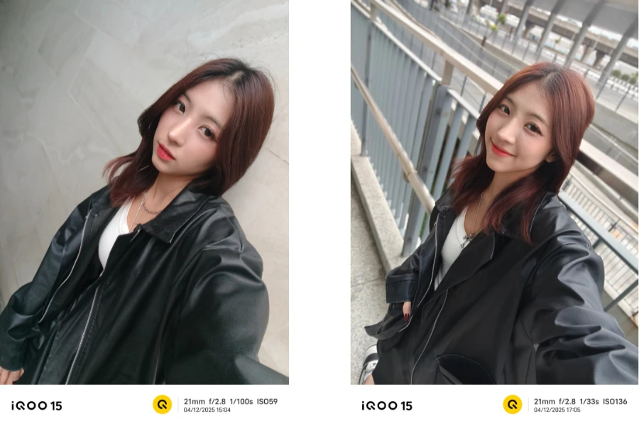 ด้านกล้องหน้าของ iQOO 15 มีความละเอียด 32MP f/2.2 จากการใช้งานให้มุมภาพที่กว้าง FOV 90 องศา สามารถใช้ถ่ายเซลฟี่ภาพกลุ่มดี โทนภาพเป็นสไตล์บิ้วตี้ สดใส สามารถปรับโทนผิวกระจ่างใสได้ ซึ่งจากที่ลองถ่ายได้โทนผิวไปทางอมชมพูเล็กน้อย ปรับผิวหน้าได้สวยเนียน สามารถถ่ายแล้วโพสต์ลงโซเชียลได้เลย