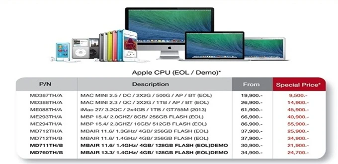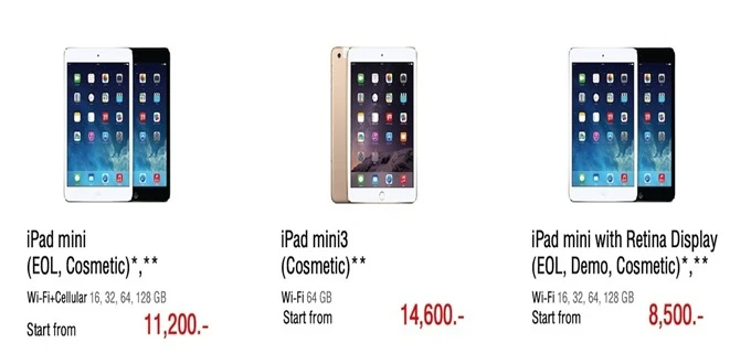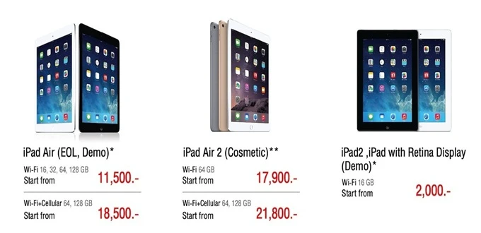 - iPad Air (EOL, Demo) wifi 16, 32, 64, 128 GB เริ่มที่ 11,500 บาท