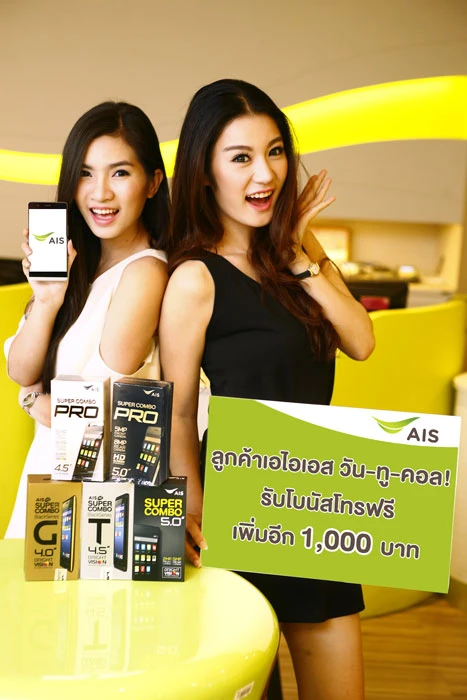 ซื้อ AIS Super Combo 5 รุ่นสุดฮิต รับ Super Bonus ค่าโทรฟรีเพิ่มอีก 1,000 บาท